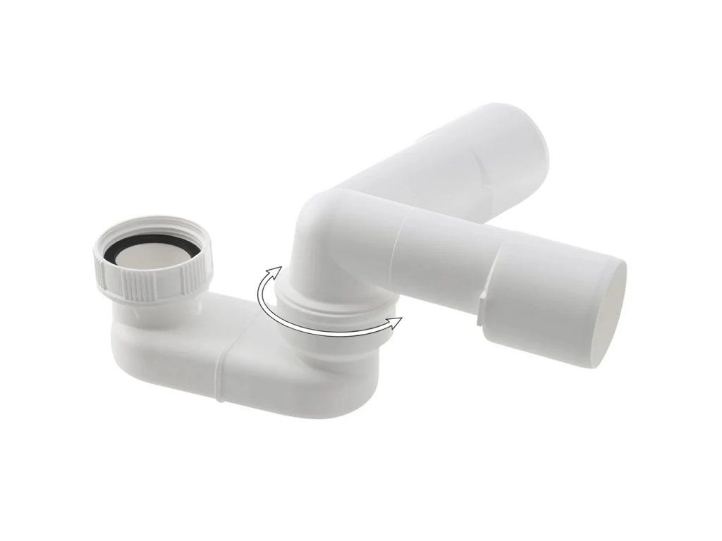 Sifon je vybaven otočným kloubem vyrobeným technologií přesného zalisování. Spoj neobsahuje gumové těsnění – vodotěsnost je zajištěna samotnou konstrukcí spoje bez použití gumových prvků.