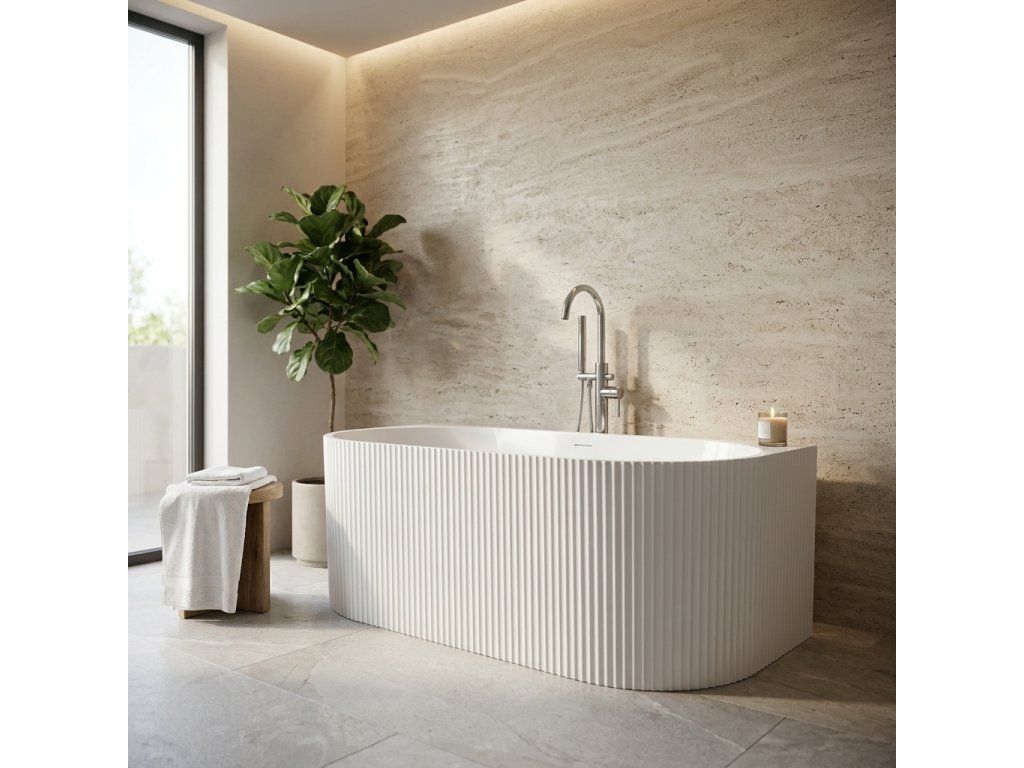 CERANO - Volně stojící akrylátová vana Aira, nástěnná - bílá lesklá - 150x75 cm