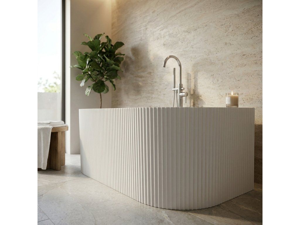 Přepad je pevně spojen s vanou a tvoří součást sklolaminátového nástřiku po jejím obvodu, proto není nutné instalovat celý vanový komplet, ale pouze vanovou výpusť. Díky slim provedení působí úzký přepadový otvor nenápadně a nenarušuje čisté linie vany.