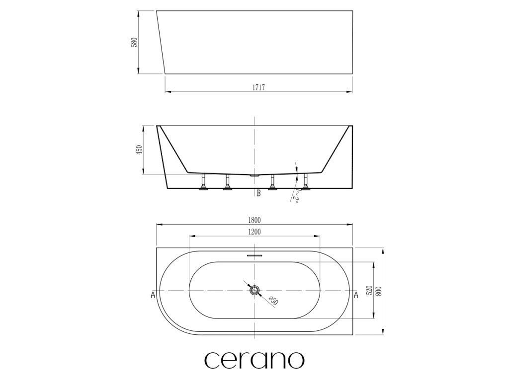CERANO - Volně stojící akrylátová vana Bianco, pravá - bílá lesklá - 180x80 cm