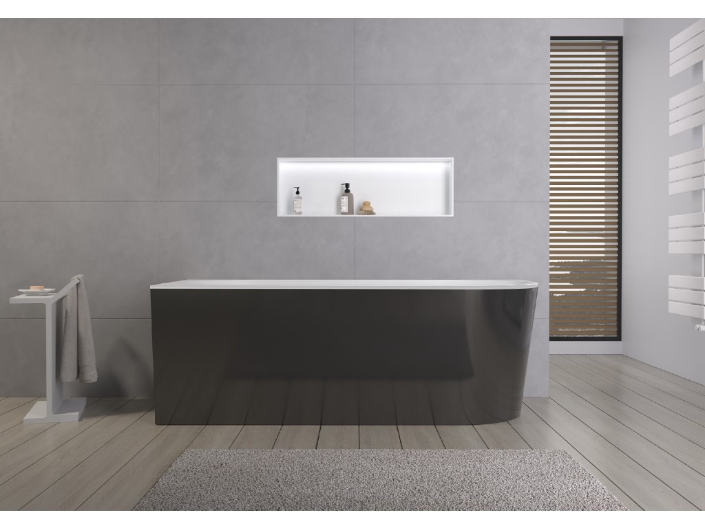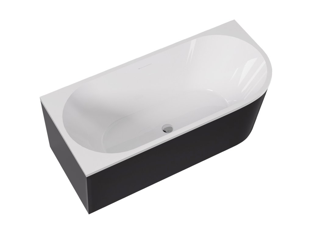 CERANO - Volně stojící akrylátová vana Bianco, levá - černá matná/bílá lesklá - 170x80 cm