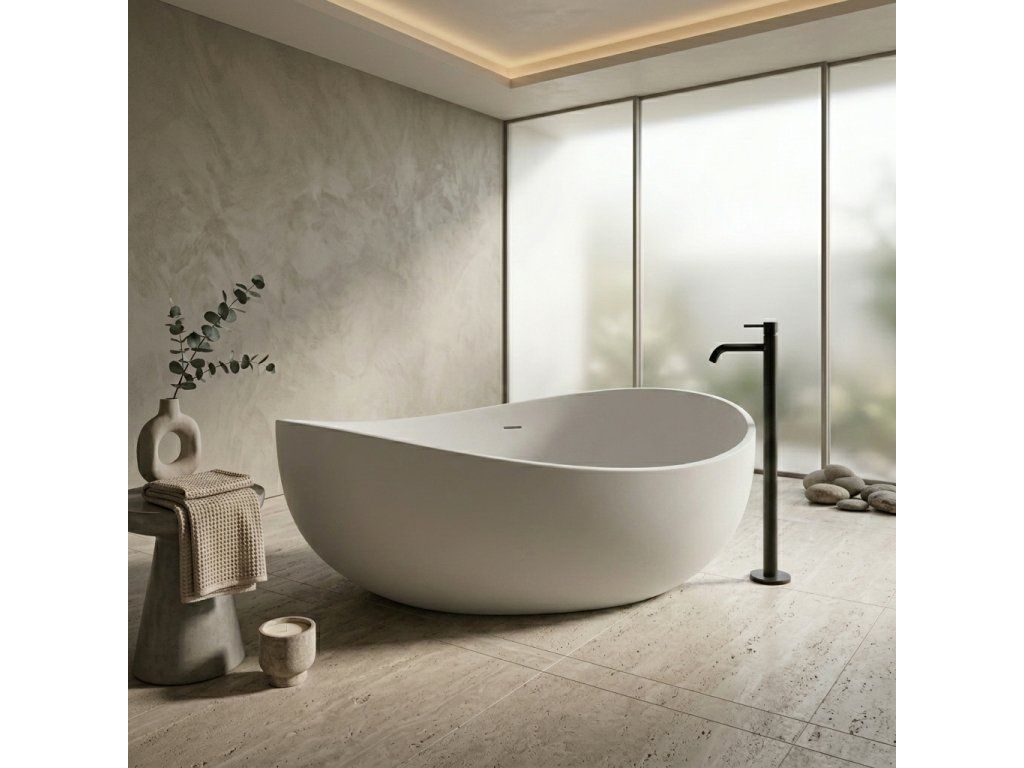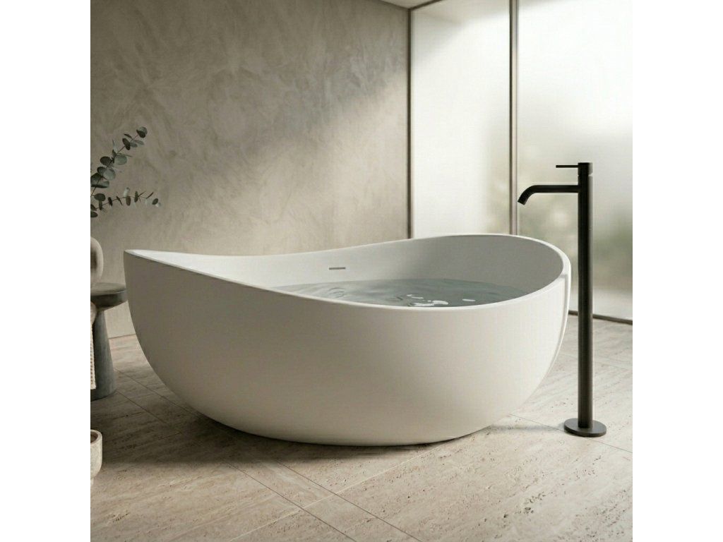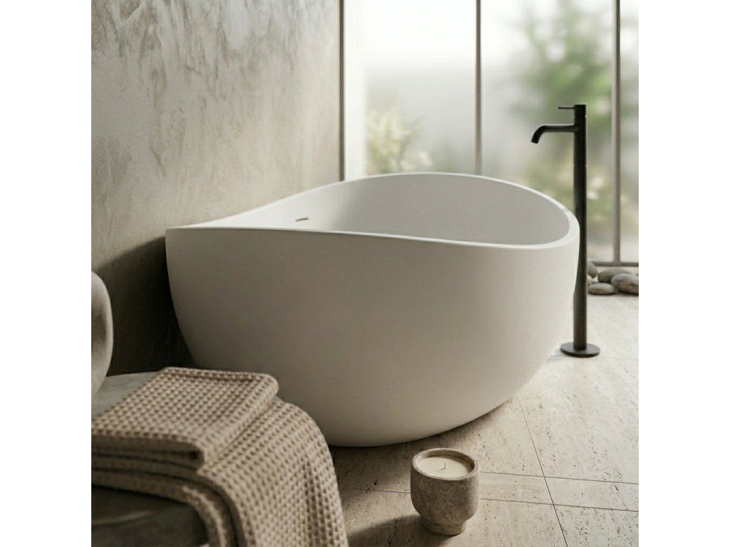 CERANO - Volně stojící vana z litého mramoru Valentina - bílá matná - 180x110 cm