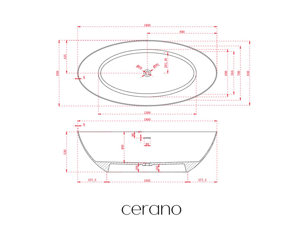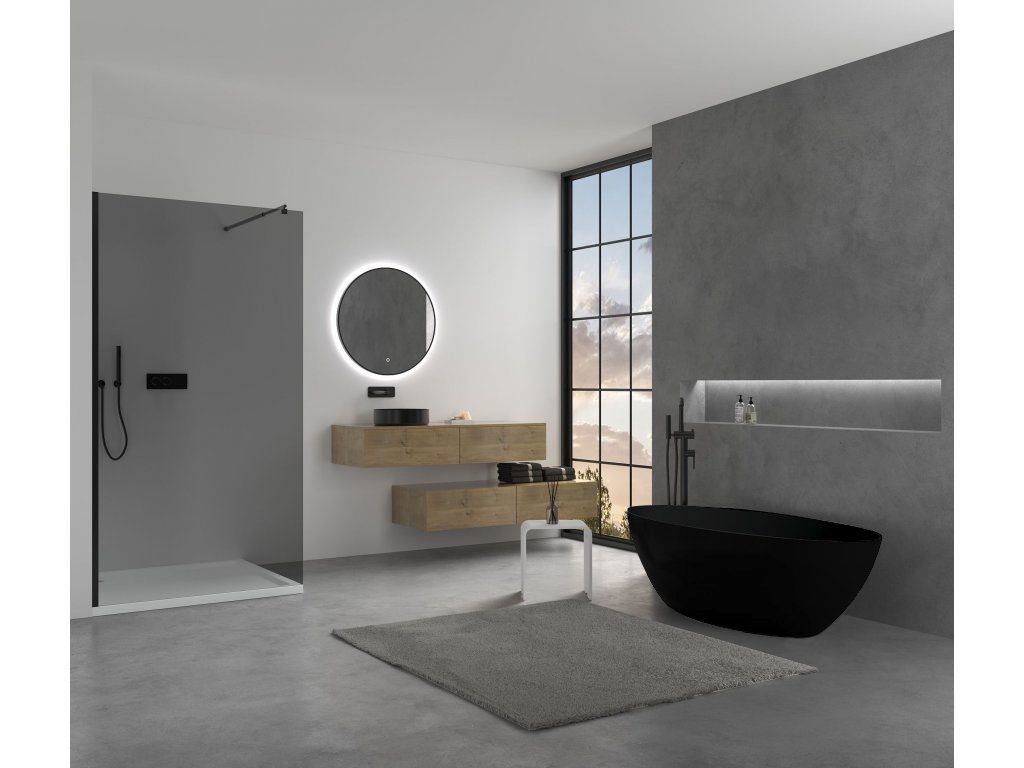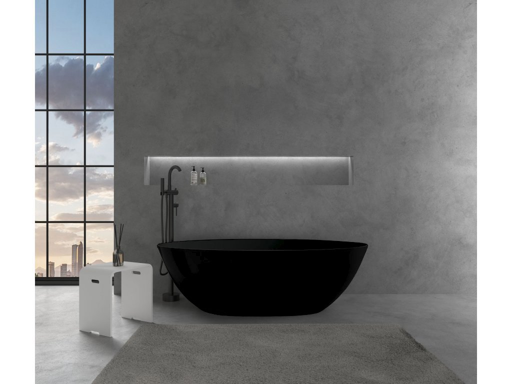 CERANO - Volně stojící vana z litého mramoru Emilia - černá matná - 180x85cm - 2. jakost