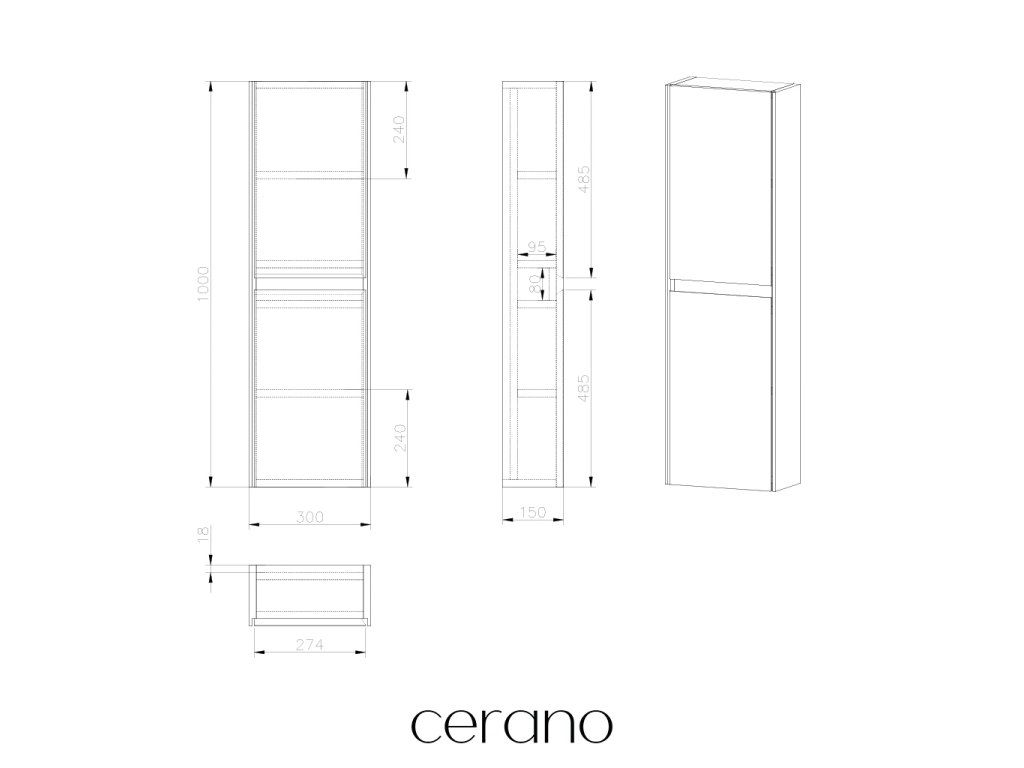 CERANO - Koupelnová skříňka Noira - vysoká - bílá matná - 30x100x15 cm