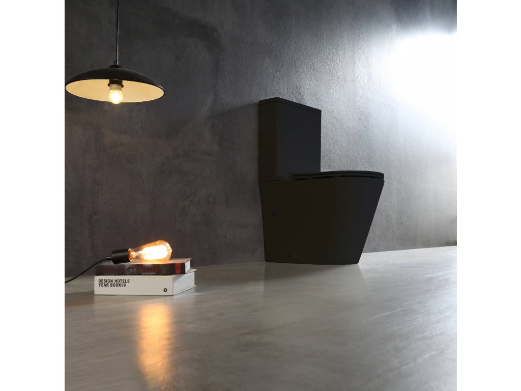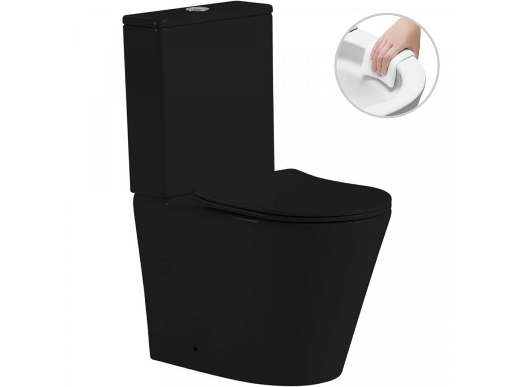 CERANO - WC kombi Carlito, Rimless + Slim/UF sedátko - spodní/zadní odpad - černá matná - 61x36,5 cm