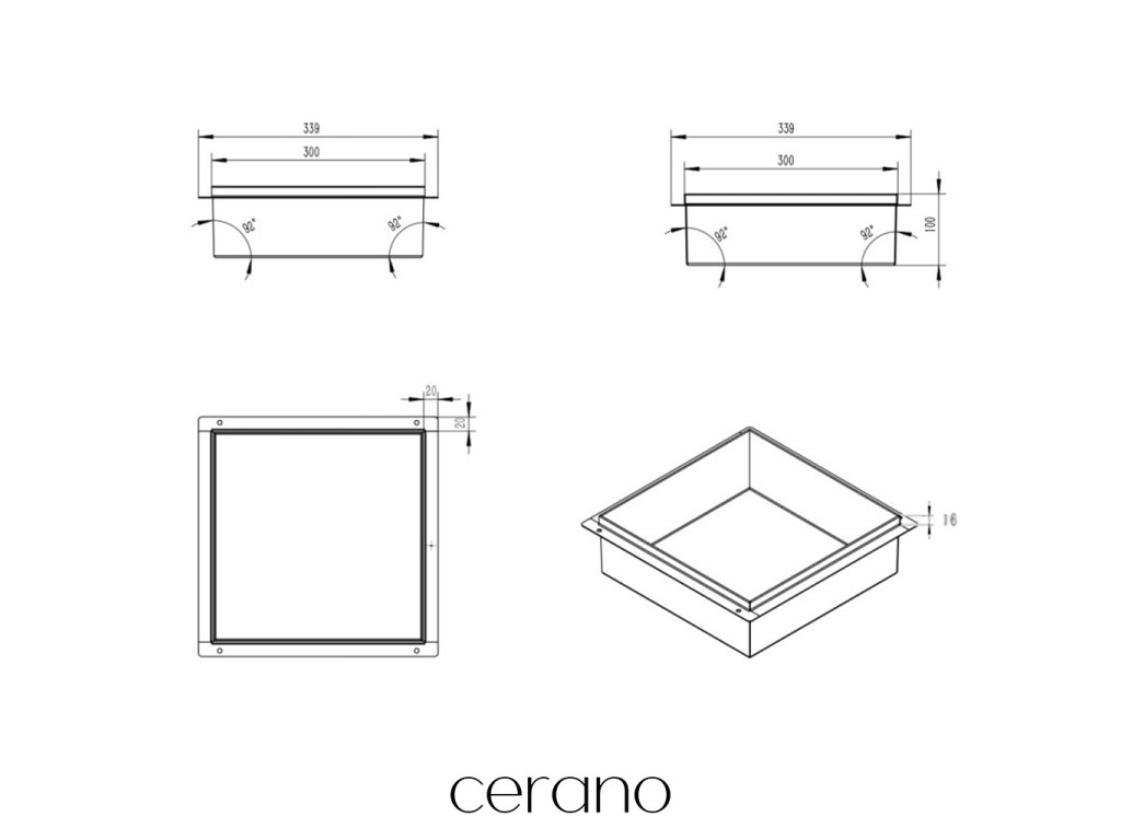CERANO - Zápustná polička/nika do obkladu - nerezová - 30x30x10 cm