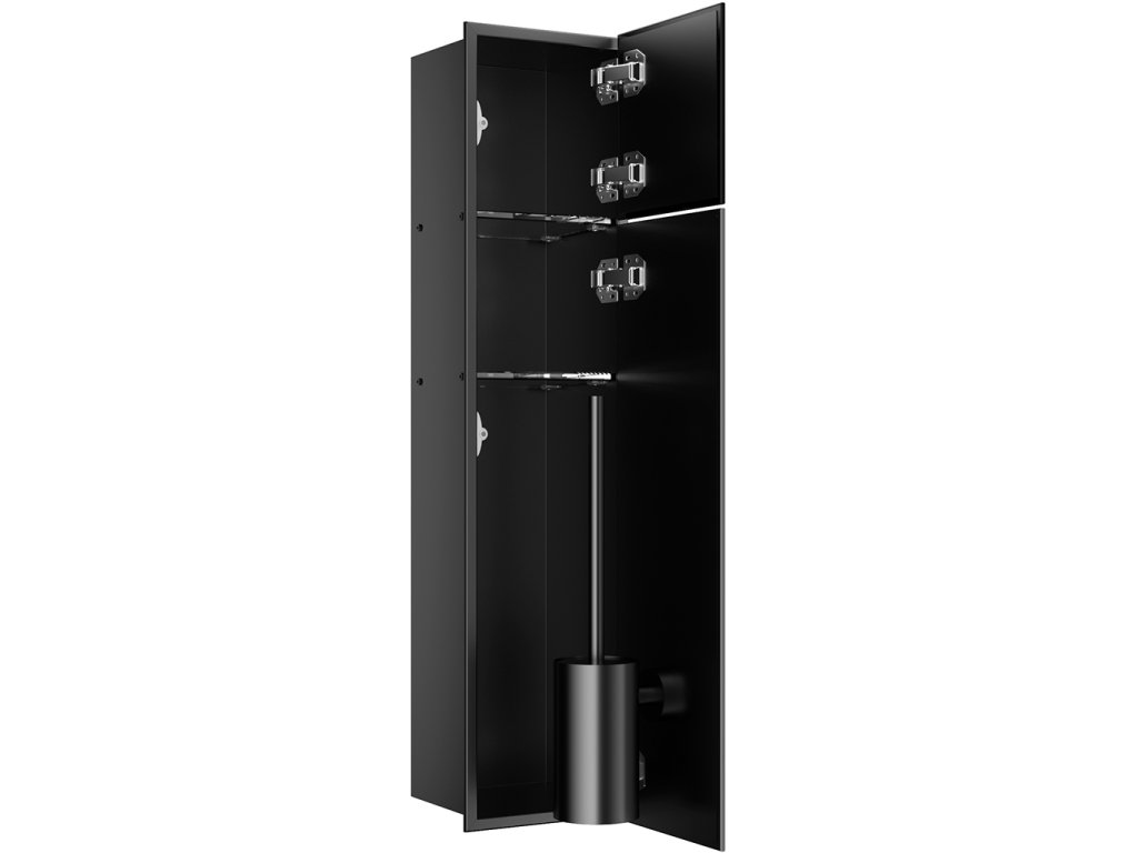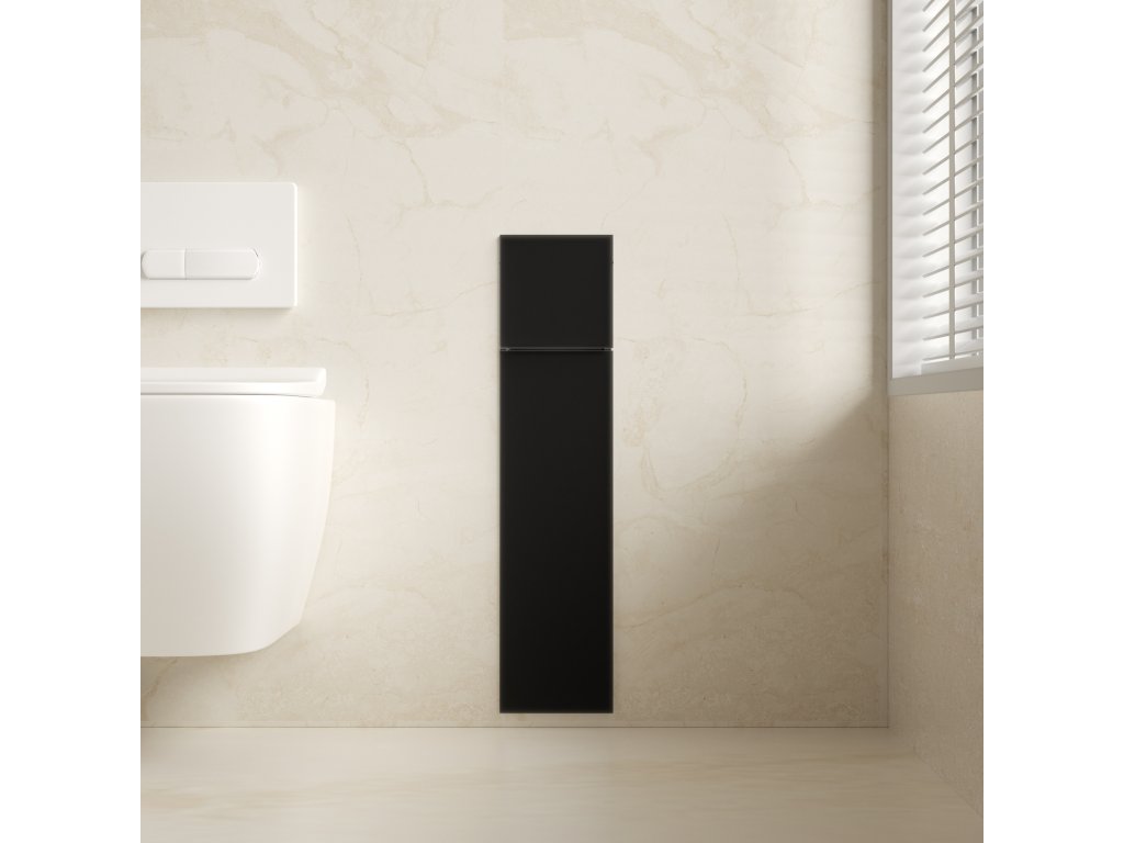 CERANO - Zápustná skříňka na toaletní papír Inova - 2 police - černá matná - 76,8x18,2x15,3 cm