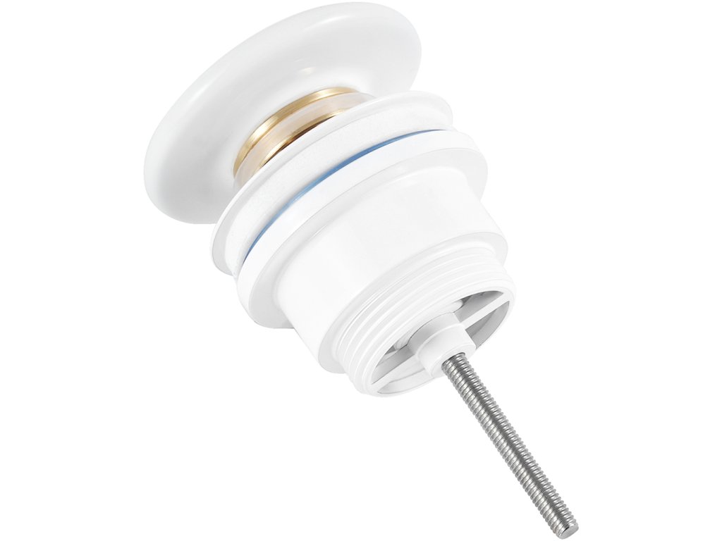 Zátka click-clack je vybavena závitem o velikosti 5/4", což odpovídá standardnímu průměru používanému v mnoha typech umyvadel a van. Tento závit zajišťuje pevné a bezpečné uchycení, což minimalizuje riziko úniku vody a zajišťuje dlouhou životnost výrobku. Díky univerzální velikosti 5/4" je zátka kompatibilní s širokou škálou instalací, což usnadňuje její použití při renovacích nebo výměnách. Tento závit také umožňuje snadnou a rychlou montáž bez potřeby speciálních nástrojů.